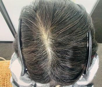 写真ではわかりづらいのですが、女性特有のびまん性脱毛症です。当院での治療後は、しっかりとボリュームが出て元の状態へ戻すことができました。薄くなっていた分け目も全く気になりません。